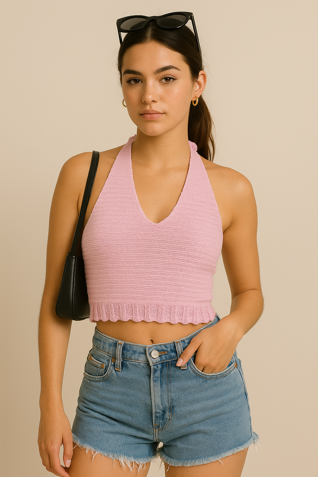 Elegantní a pohodlný letní top s výstřihem za krk. Měkký, elastický materiál se skvěle přizpůsobí postavě a jemné řasení ve spodní části dodává šmrnc. Ideální ke kraťasům, sukním i džínám. Skvělý kousek do horkých dnů.